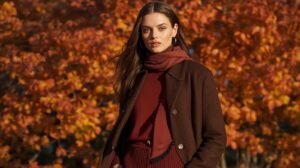 Najväčšiu pozornosť si túto jeseň zaslúži práca s materiálmi. Zabudnite na klasickú čiernu, pretože na výslnie prichádza hnedá – od hlbokej čokoládovej (Mocha Mousse) cez karamelovú až po svetlú béžovú. Tieto zemité tóny tvoria elegantný základ šatníka, ktorý dopĺňajú drahokamové farby, najmä dramatická burgundy a olivová zelená.