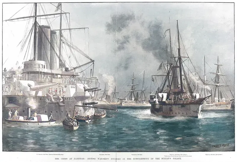 Dňa 27. augusta 1896 sa odohrala vojna, ktorá dnes nesie názov Anglo-Zanzibarská vojna. Tento vojenský konflikt vznikol na Zanzibare, malom, ale dôležitom ostrove v Indickom oceáne, ktorý bol v tej dobe pod britským protektorátom. Na ostrove sa vyskytol politický spor ohľadom nového sultána, čo nakoniec viedlo k vojenskému zásahu. Sultán Chalid bin Barghaš, ktorý sa dostal k moci len dva dni predtým, nebol v súlade s britskými záujmami, ktoré mali už dlhodobo vplyv na tento región. Veľká Británia odmietla uznať jeho nárok na trón s odvolaním sa na zmluvu z roku 1866, v ktorej sa uvádzalo, že nový sultán môže nastúpiť na trón len s britským súhlasom. Namiesto Chalida odporovali Hamada bin Thawiniho, ktorý bol viac naklonený britským obchodným a politickým záujmom. Keďže Chalid odmietol abdikovať, rozhodli sa to vyriešiť vojensky – a netrvalo im to viac ako 38 minút.