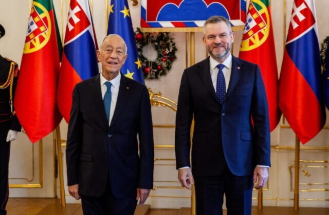 21.12.2024 (SITA.sk) – Prezident SR Peter Pellegrini v sobotu v Prezidentskom paláci prijal portugalského prezidenta Marcela Rebela de Sousu, ktorý pricestoval na jednodňovú pracovnú návštevu Slovenska. Táto návšteva sa zameriava na hodnotenie bilaterálnych vzťahov a možností ich ďalšieho rozvoja. V rámci svojej cesty plánuje portugalský prezident navštíviť aj portugalský vojenský kontingent v Centre výcviku Lešť, ktorý je súčasťou Mnohonárodnej bojovej skupiny NATO.